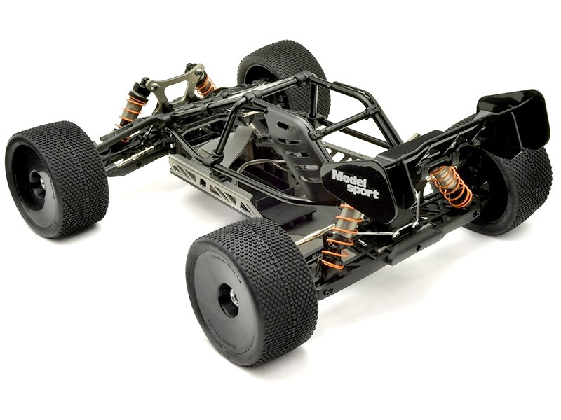 Tulajdonságok: - Csővázas karosszéria nagy leszorító erejű High Down Force hátsó szárnnyal - Új továbbfejlesztett felfüggesztés, hosszú lengőkarok és új kormánygeometria a nagyobb tapadás és a még jobb irányíthatóság és stabilitás érdekében - Teljesen golyóscsapágyazott fém fogaskerekes hajtáslánc CVD tengelyekkel a kormányzott kerekeknél - Eloxált, keményített alumínium alváz, tornyok, felső merevítők - 17mm Big bore nagy átmérőjű olajos lengéscsillapítók porvédővel - Elől-hátul beépített keresztstabilizátor - Nagy tapadású mini-pin mintázatú versenygumik töméssel és fekete verseny teli felnik (ragasztani kell!) - Csökkentett tömeg a nagyobb gyorsulás, sebesség és a jobban irányítható ugratás érdekében Szükséges kiegészítők: - Távirányító - Kormány szervó (min. 10-15kg-os) - 1:8 Brushless motor (2000-2300KV) és 150A brushless szabályzó - 4 cellás 14.4V, minimum: 5000mah 30-40C Lipo akkumulátor - Lipo akkumulátor töltő - Profi gumiragasztó - Lexan festék a karosszériához Videó: VIDEO