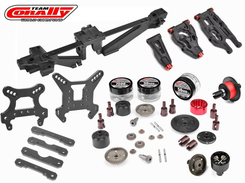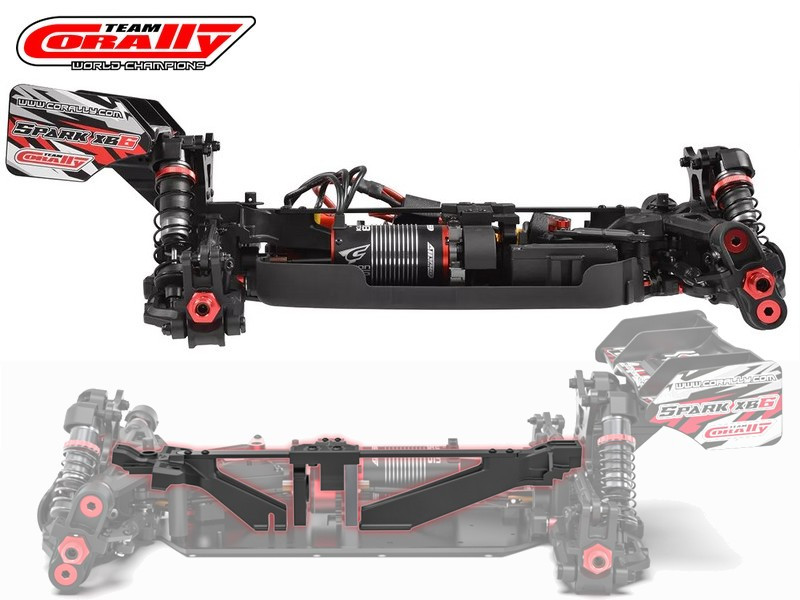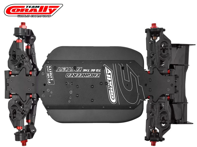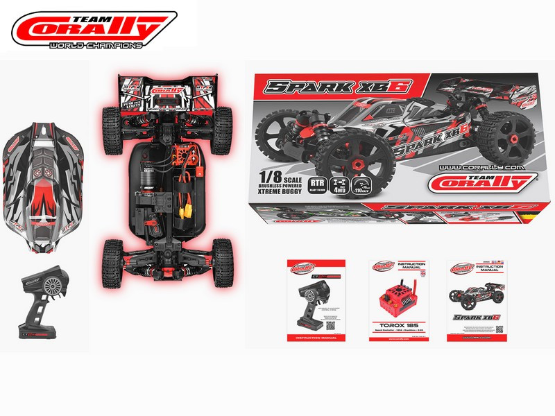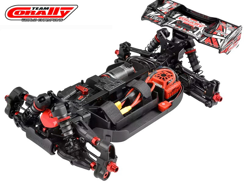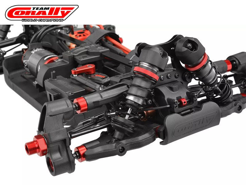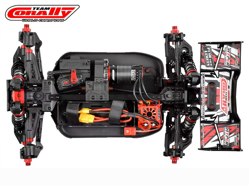 - Elektronika: Team Corally Torox 185 ESC 4-6S LiPo XT90 csatlakozó, Kuron 2050kV 4 pólusú BL motor 4-6S, CRHV-7225 HV fém fogaskerekes 25 kg kormány szervo + alu szervókar, CT2R 2,4 GHz-es távirányító