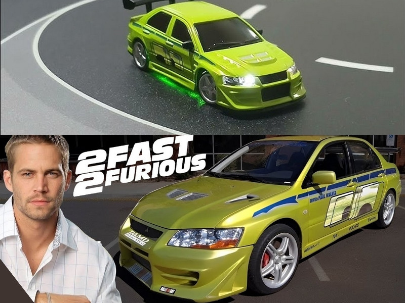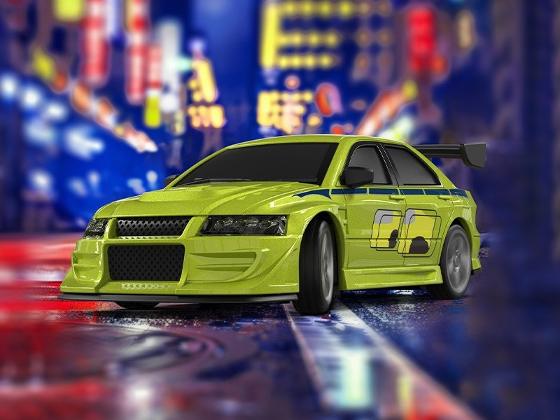 Turbo Racing 1:76 Mitsubishi Lancer Evo VII Fast & Furius Limitált kiadás, RTR micro távirányítós autómodell (lime zöld)
