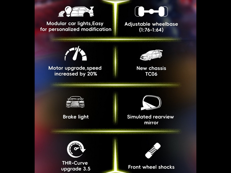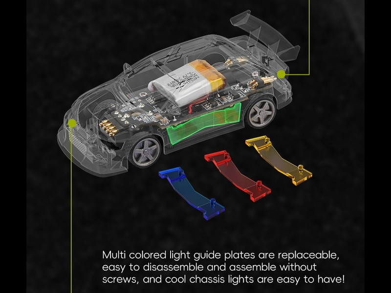 A világ legkisebb távirányítós autómodellje ami már nem a játék kategória, cserélhető alkatrészek, proporcionális (fokozatmentes) vezérlés, Lipo akkumulátor, cserélhető karosszériák, LED világítás. Plusz 2db festetlen karosszéria ajándékba.