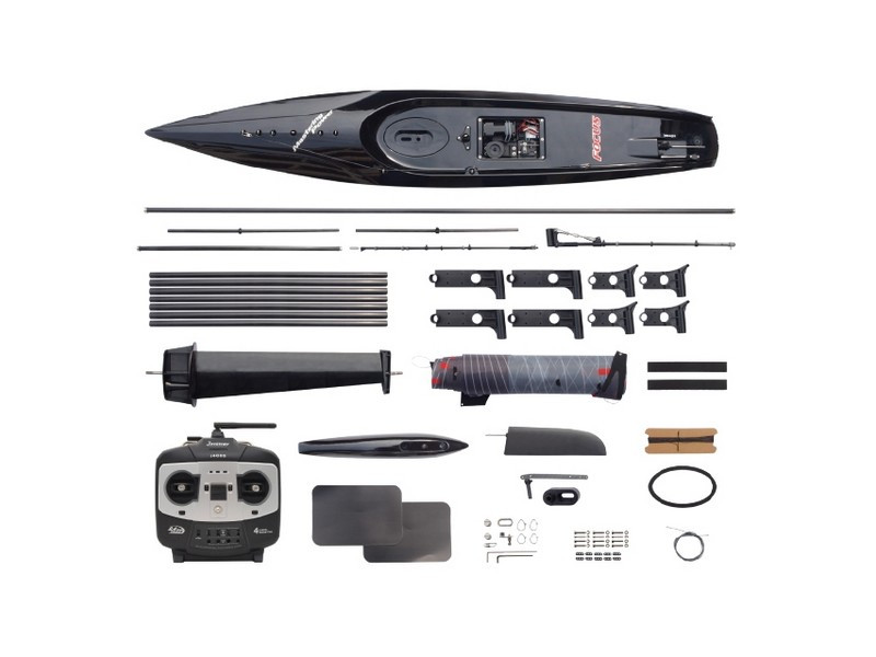 1M osztályú ( 1 méteres test) versenyvitorlás, karbon árbóc és vitorlatartók, teljes magasság 2046 mm. Nagyszerű modell még igazán nagy vízfelületekre és erősebb szélre is!